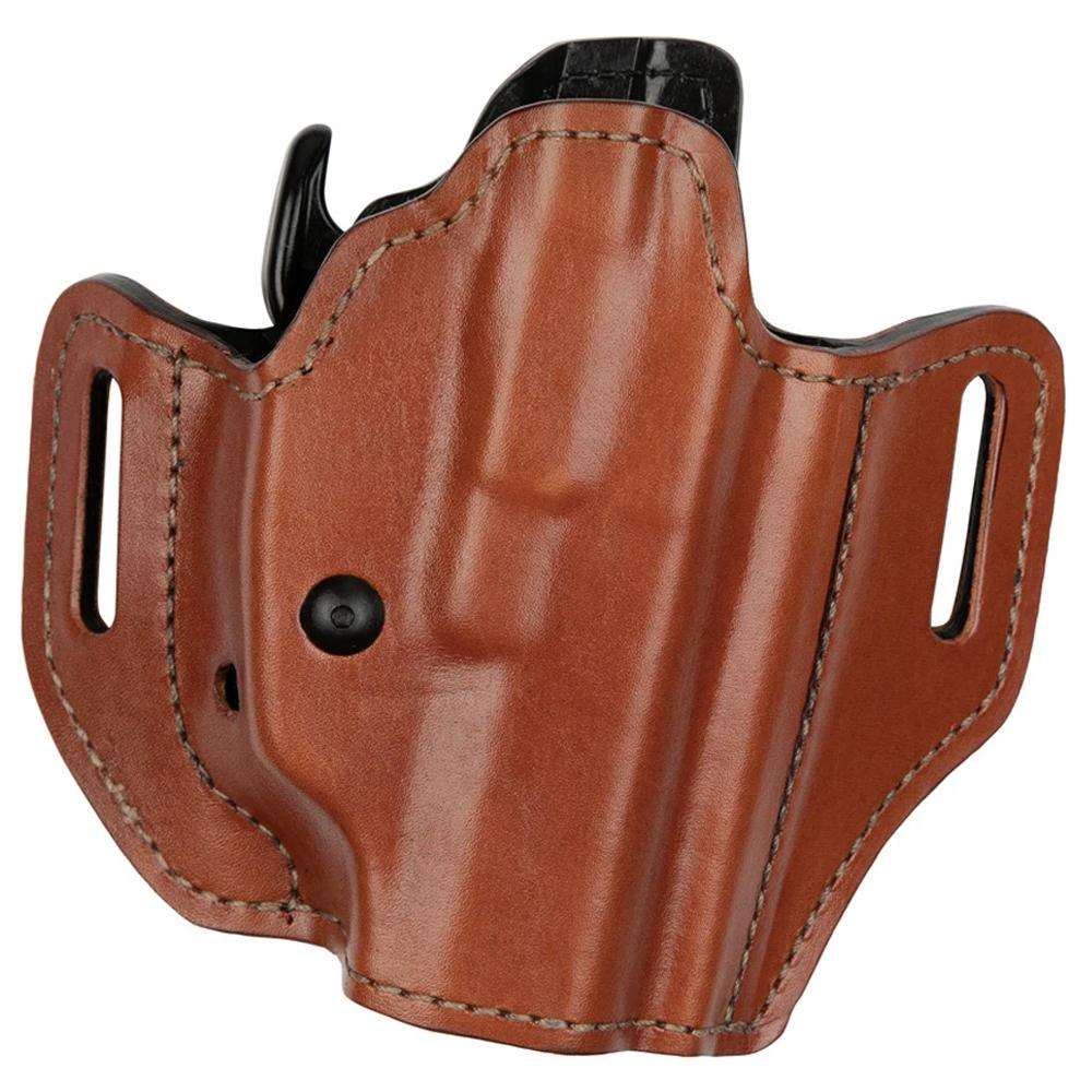 The Bianchi 126GLS Assent is an open-top holster with a high-ride hip carry. The 126 offers a low-profile contoured body-hugging design with GLS (Grip Locking System) an innovative technology that automatically secures the weapon when holstered and releases it upon application of the middle finger with a standard shooting grip for a more intuitive and safer release. Highly versatile the 126GLS is customizable and adjusts to securely fit over 250 firearms. The 126GLS Assent combines the luxurious look and feel of a premium full-grain leather exterior with a sturdy laminate synthetic liner. The holster fits 1.5” (38mm) belt widths.