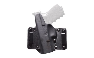 The Leather WING(TM) holster by BlackPoint Tactical is a naturally evolved version of the original KYDEX(R) holster. The Leather WING(TM) is designed to retain the most popular features of a KYDEX(R) holster, while improving the fit of the holster to the body through the addition of leather wings. These wings allow the holster to wrap and fit the contours of the waist. The seamless integration of leather and KYDEX(R) allows for the retention and function of a traditional KYDEX(R) holster, while providing the comfort of a traditional leather holster. The Leather WING(TM) allows the holster to naturally curve with the body, giving a much slimmer and more comfortable fit. This configuration allows for ultimate comfort, reliability, and concealment.