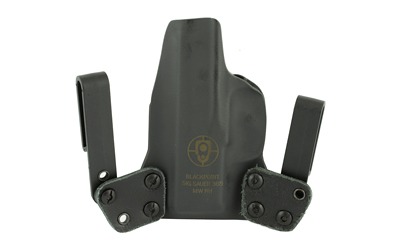 The Mini WING(TM) by BlackPoint Tactical is designed to be a minimized IWB holster which allows the user to carry comfortably all day long without sacrificing performance or durability. The pairing of KYDEX(R) and leather on this holster provides the functional benefits of a KYDEX(R) holster while providing the flexibility and comfort of a leather holster. The KYDEX(R) reliably retains your pistol without a break in or wear out period and it prevents the holster from collapsing when your pistol is drawn for easy one handed holstering. The mini wings give the holster flexibility to move with your body, making it comfortable for use all day, every day. Additionally, the mini wings were constructed to provide the user with a variety of different configurations for IWB carry with adjustments available to the cant and ride height of the holster.