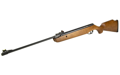 The Crosman Vantage Single-Shot Break-Barrel Air Rifle is powered by Nitro Piston Technology for reduced recoil and up to 70% less noise. The handsome wood stock and foregrip, rifled-steel barrel and lever safety offer a traditional feel. The Vantage features an adjustable two-stage trigger, fiber optic sights, and fires .22 caliber pellets at speeds up to 950 feet-per-second. This smoother-cocking, quieter rifle is ideal for small game hunting, plinking, spinners, and more!