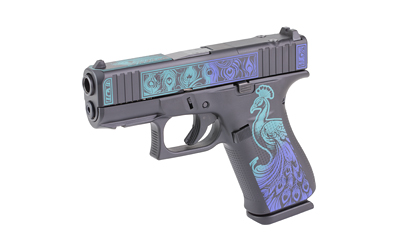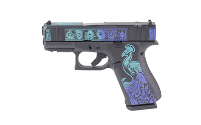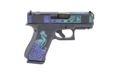 Chambered in 9×19, the G43X MOS has slide cuts designed for specific micro-optics and the GLOCK Slim Mounting Rail for attaching accessories. It is the ideal tactical partner in the well-known GLOCK Slimline design for easy concealment. This exclusive model features a custom Peacock Cerakote finish by Shark Coast Tactical.