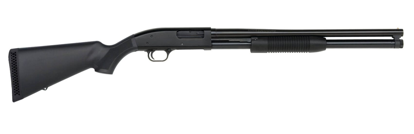 These 88 Special Purpose Security models have a 3″ chamber, 18.5″ blued barrel with a fixed cylinder bore and a brass front sight bead barrel set in a rugged black synthetic stock with a ribbed forearm.