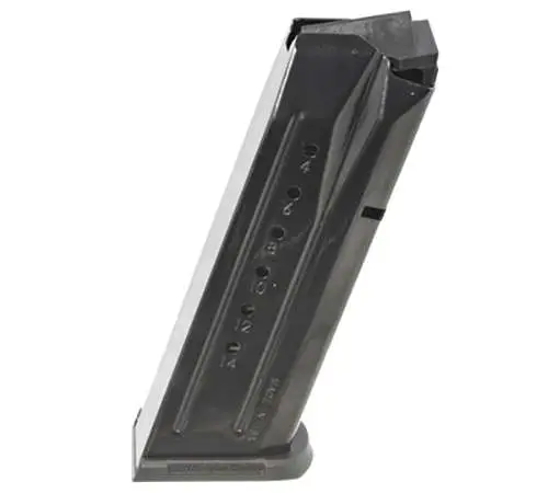 This detachable magazine is constructed of steel with a black oxide finish and is compatible with your Ruger Security9. This model has a 15-round capacity.